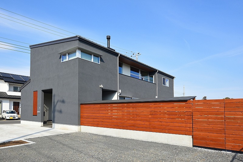 薪ストーブをストックする薪置き場を外部からの目線を考慮した位置にご提案し、玄関から庭につづくピロティーにはバイクや自転車も収納出来る。
